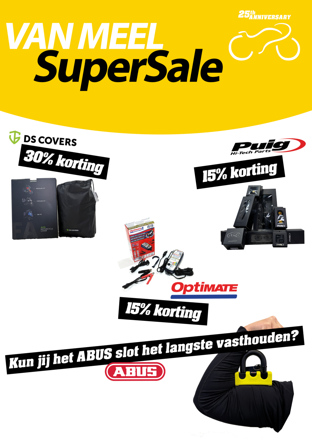 Van Meel Motoren bestaat dit jaar 25 jaar – een mijlpaal die niet onopgemerkt voorbijgaat. Ter ere van dit jubileum organiseert het bedrijf een groots Supersale-weekend, waarmee een geliefd evenement uit het verleden opnieuw tot leven wordt gebracht.Op zaterdag 2 mei van 09:00 tot 17:00 uur en zondag 3 mei van 11:00 tot 17:00 uur zijn motorliefhebbers en geïnteresseerden van harte welkom om dit bijzondere jubileum mee te vieren.